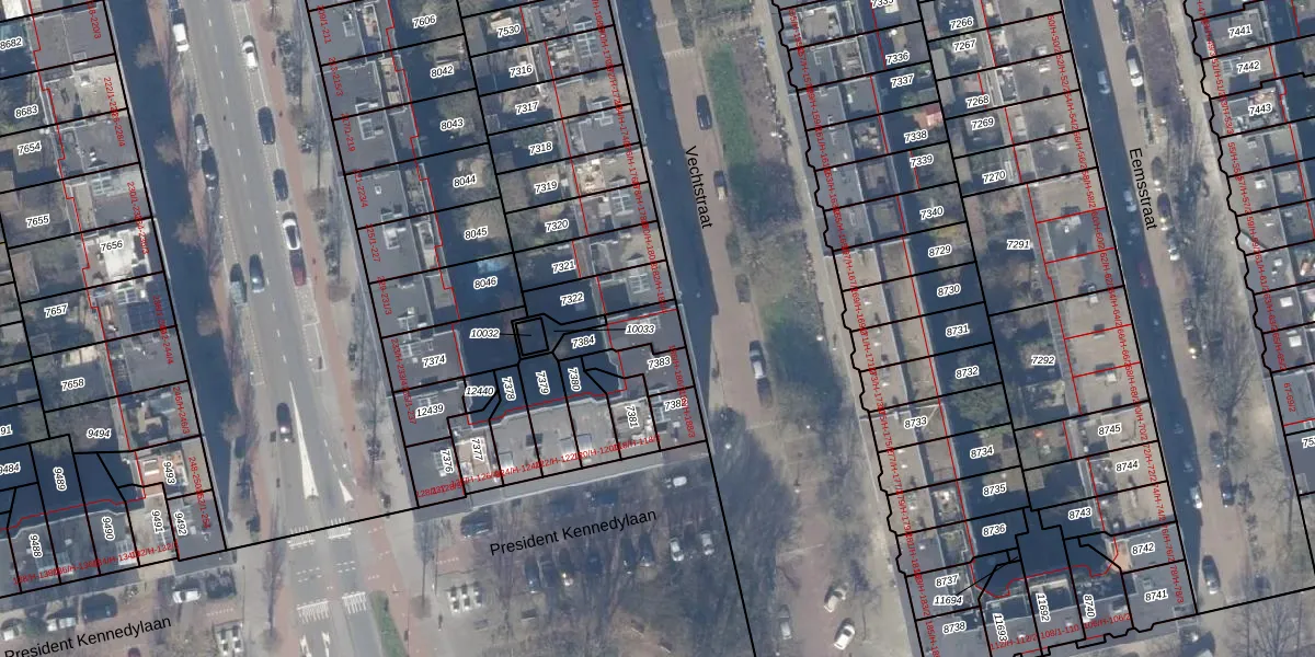 Het adres ligt op het perceel ASD18-V-7384, dat zich in de kadastrale gemeente Amsterdam bevindt. Het perceel is kleiner dan gemiddeld in Amsterdam. Het perceel is 102 m² groot, terwijl het gemiddelde ligt op 558,8 m². De grootste perceeloppervlakte in de kadastrale gemeente is 12,5 ha. De kleinste oppervlakte bedraagt 0 m². Op het perceel liggen in totaal 5 adressen. In de Basisregistratie Kadaster (BRK) werden de grenzen van het perceel geregistreerd op 17-11-2006.
