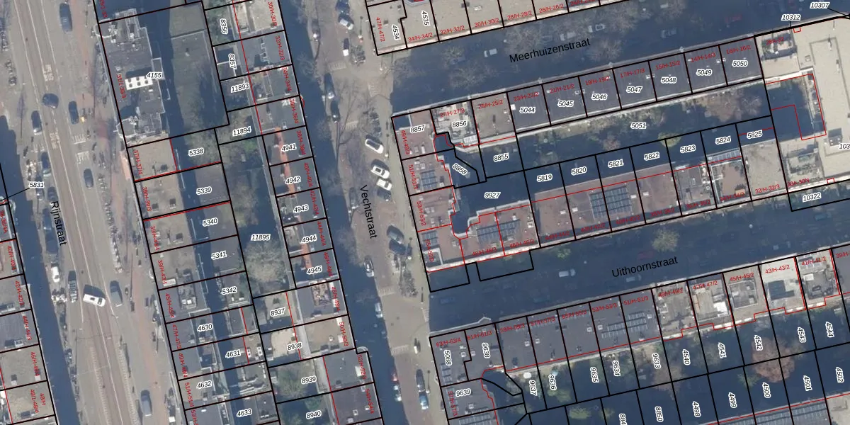 Het perceel waarop Vechtstraat 53-2 staat heeft een oppervlakte van 611 m². Dit is een groot perceel. De perceeloppervlakte wordt geregistreerd door het Kadaster. Gedetailleerde informatie over de maten van dit perceel kunt u vinden in het rapport Kadastrale kaart met maatvoering van Vechtstraat 53-2.