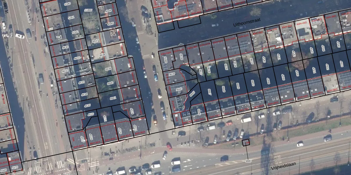 Het perceel waarop het adres ligt is ASD18-V-9640. De afkorting 'ASD18' staat voor kadastrale gemeente Amsterdam. Het perceel is kleiner dan gemiddeld in Amsterdam. Het perceel is 111 m² groot, terwijl het gemiddelde ligt op 559,23 m². Het grootste perceel in de kadastrale gemeente is 12,5 ha. Het kleinste perceel heeft een oppervlakte van 0 m². Op het perceel liggen in totaal 4 adressen. In de Basisregistratie Kadaster (BRK) werden de grenzen van het perceel geregistreerd op 29-09-2006.