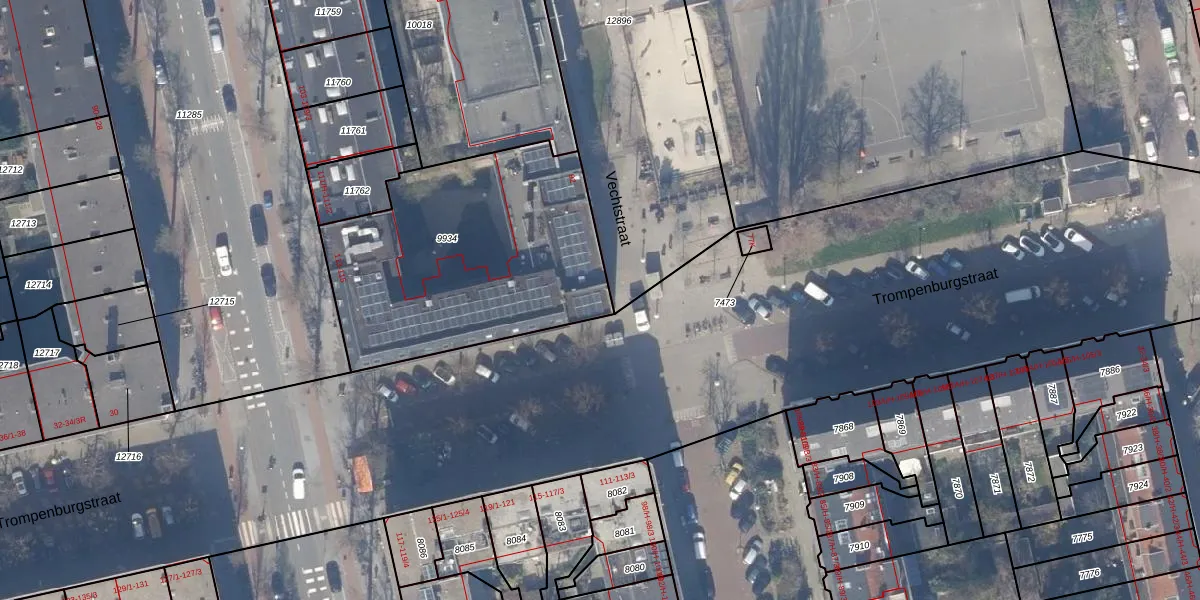 Het adres is gelegen op perceel 9934 in de sectie V en de kadastrale gemeente Amsterdam. De kadastrale aanduiding is aldus ASD18-V-9934. Het perceel is met 1297 m² relatief groot. Het gemiddelde ligt in de kadastrale gemeente Amsterdam op 558,8 m². De grootste perceeloppervlakte in de kadastrale gemeente is 12,5 ha. De kleinste oppervlakte bedraagt 0 m². Er zijn 39 adressen aanwezig op het perceel. In de Basisregistratie Kadaster (BRK) werden de grenzen van het perceel geregistreerd op 30-03-2010.