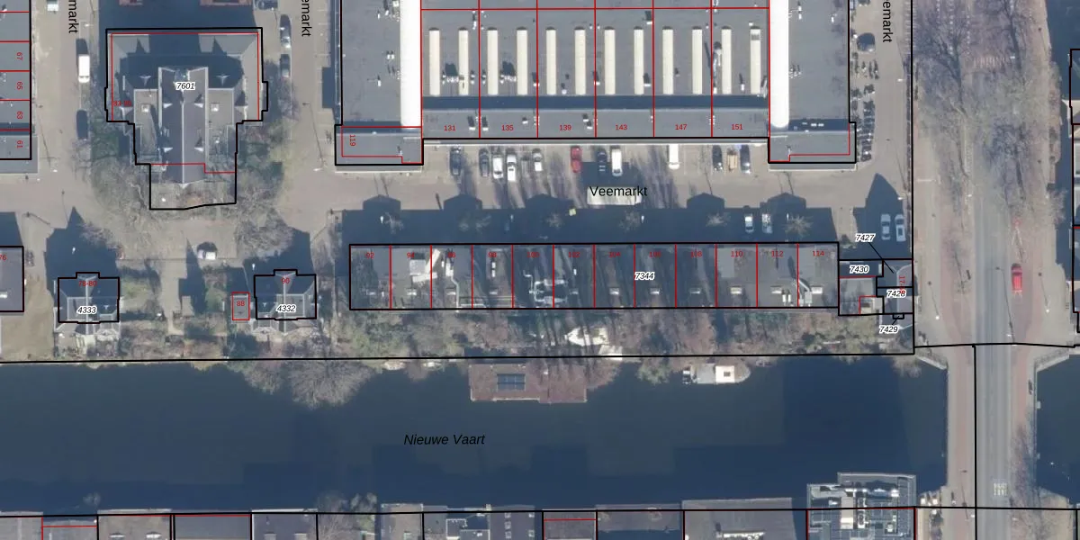 Veemarkt 100 is gelegen op kadastraal perceel ASD02A7344. Deze kadastrale aanduiding is uniek en wordt gebruikt door het Kadaster om eigendomsrechten en andere zakelijke rechten vast te leggen. Het perceel maakt onderdeel uit van de kadastrale gemeente Amsterdam.