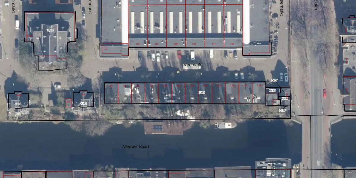 Veemarkt 102 is gelegen op kadastraal perceel ASD02A7344. Deze kadastrale aanduiding is uniek en wordt gebruikt door het Kadaster om eigendomsrechten en andere zakelijke rechten vast te leggen. Het perceel maakt onderdeel uit van de kadastrale gemeente Amsterdam.