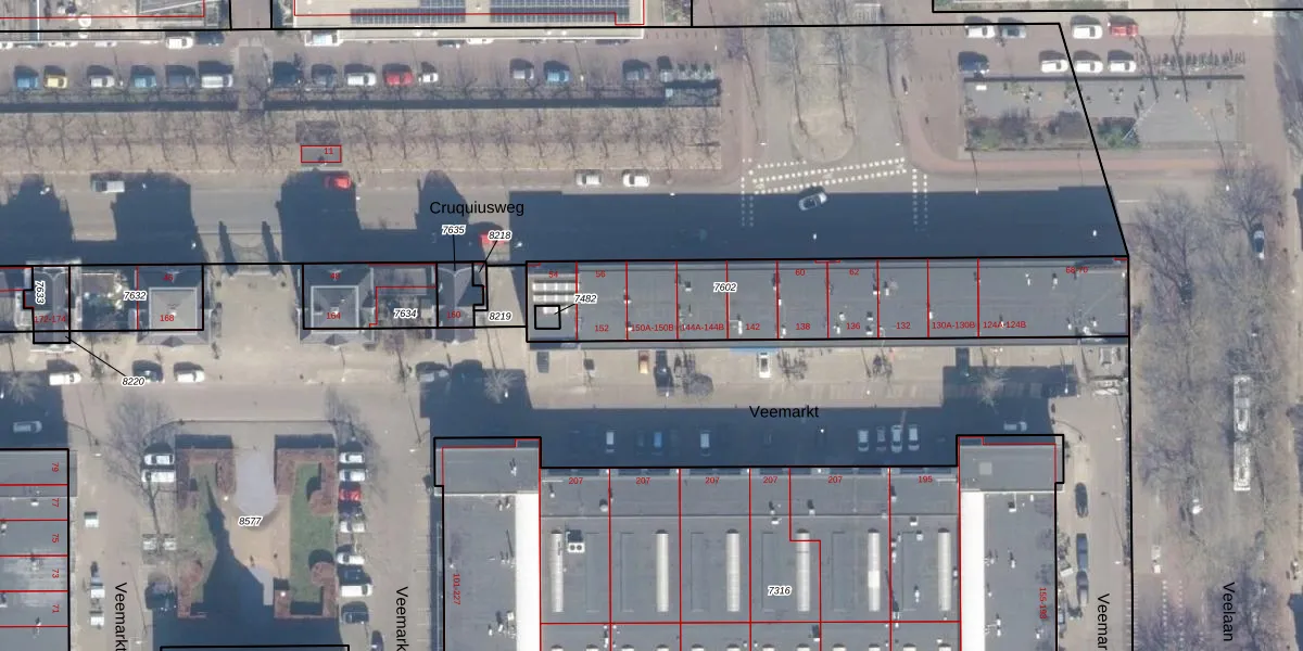 Veemarkt 150-B is gelegen op kadastraal perceel ASD02A7602. Deze kadastrale aanduiding is uniek en wordt gebruikt door het Kadaster om eigendomsrechten en andere zakelijke rechten vast te leggen. Het perceel maakt onderdeel uit van de kadastrale gemeente Amsterdam.