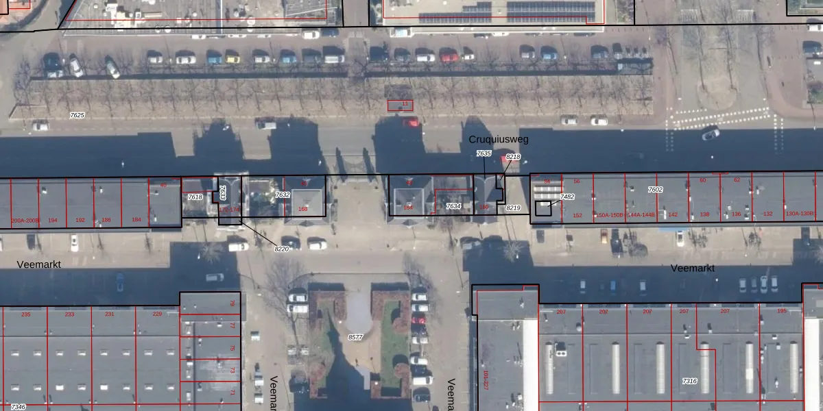 Veemarkt 164 is gelegen op kadastraal perceel ASD02A7634. Deze kadastrale aanduiding is uniek en wordt gebruikt door het Kadaster om eigendomsrechten en andere zakelijke rechten vast te leggen. Het perceel maakt onderdeel uit van de kadastrale gemeente Amsterdam.