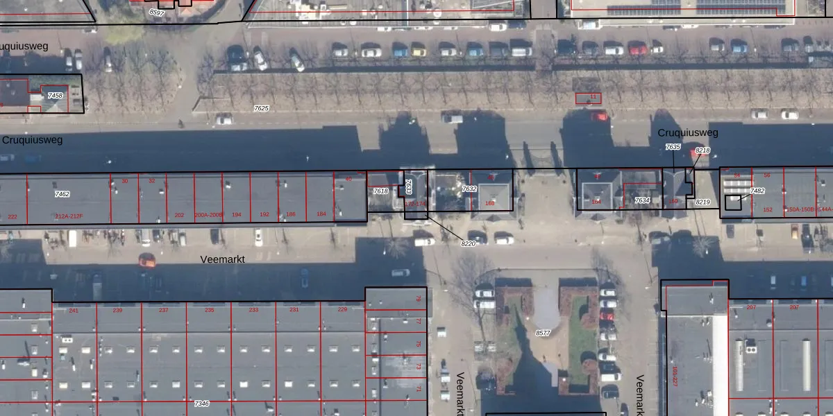 Veemarkt 174 is gelegen op kadastraal perceel ASD02A7633. Deze kadastrale aanduiding is uniek en wordt gebruikt door het Kadaster om eigendomsrechten en andere zakelijke rechten vast te leggen. Het perceel maakt onderdeel uit van de kadastrale gemeente Amsterdam.