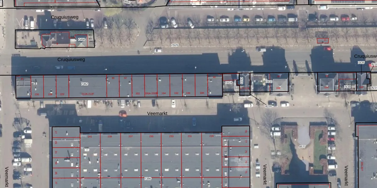 Veemarkt 186 is gelegen op kadastraal perceel ASD02A7462. Deze kadastrale aanduiding is uniek en wordt gebruikt door het Kadaster om eigendomsrechten en andere zakelijke rechten vast te leggen. Het perceel maakt onderdeel uit van de kadastrale gemeente Amsterdam.