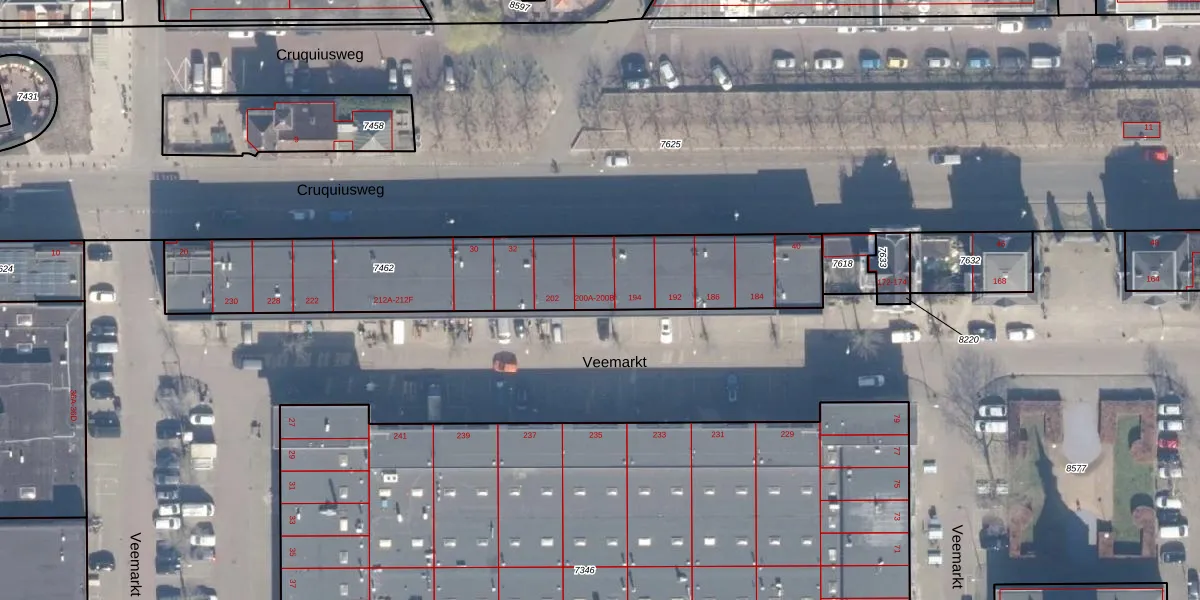 Veemarkt 200-B is gelegen op kadastraal perceel ASD02A7462. Deze kadastrale aanduiding is uniek en wordt gebruikt door het Kadaster om eigendomsrechten en andere zakelijke rechten vast te leggen. Het perceel maakt onderdeel uit van de kadastrale gemeente Amsterdam.