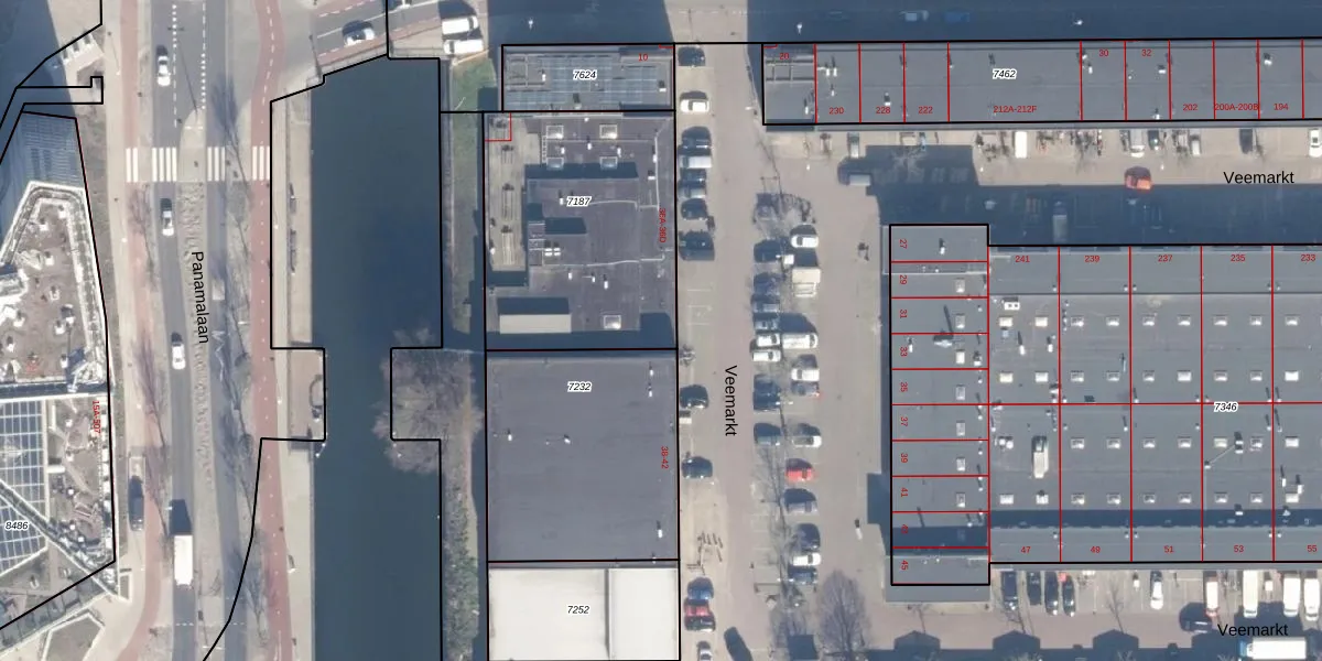 Veemarkt 36-D is gelegen op kadastraal perceel ASD02A7187. Deze kadastrale aanduiding is uniek en wordt gebruikt door het Kadaster om eigendomsrechten en andere zakelijke rechten vast te leggen. Het perceel maakt onderdeel uit van de kadastrale gemeente Amsterdam.