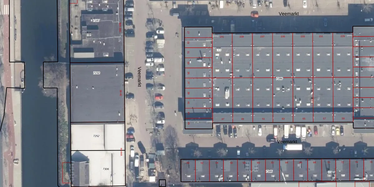 Veemarkt 39 is gelegen op kadastraal perceel ASD02A7346. Deze kadastrale aanduiding is uniek en wordt gebruikt door het Kadaster om eigendomsrechten en andere zakelijke rechten vast te leggen. Het perceel maakt onderdeel uit van de kadastrale gemeente Amsterdam.