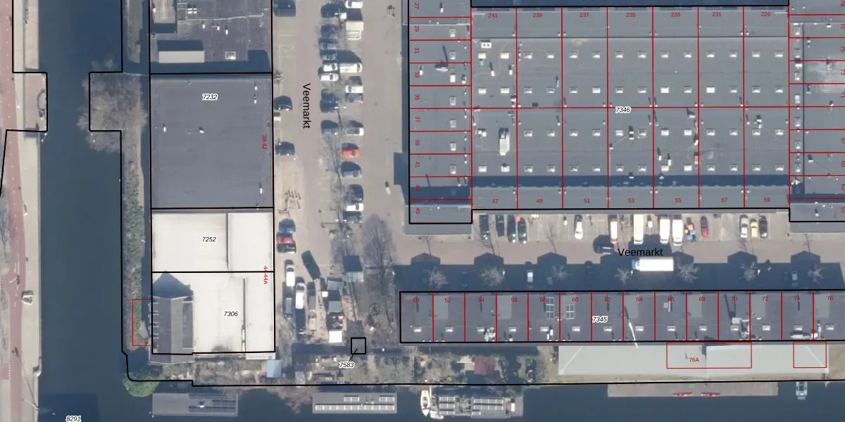 Veemarkt 45 is gelegen op kadastraal perceel ASD02A7346. Deze kadastrale aanduiding is uniek en wordt gebruikt door het Kadaster om eigendomsrechten en andere zakelijke rechten vast te leggen. Het perceel maakt onderdeel uit van de kadastrale gemeente Amsterdam.