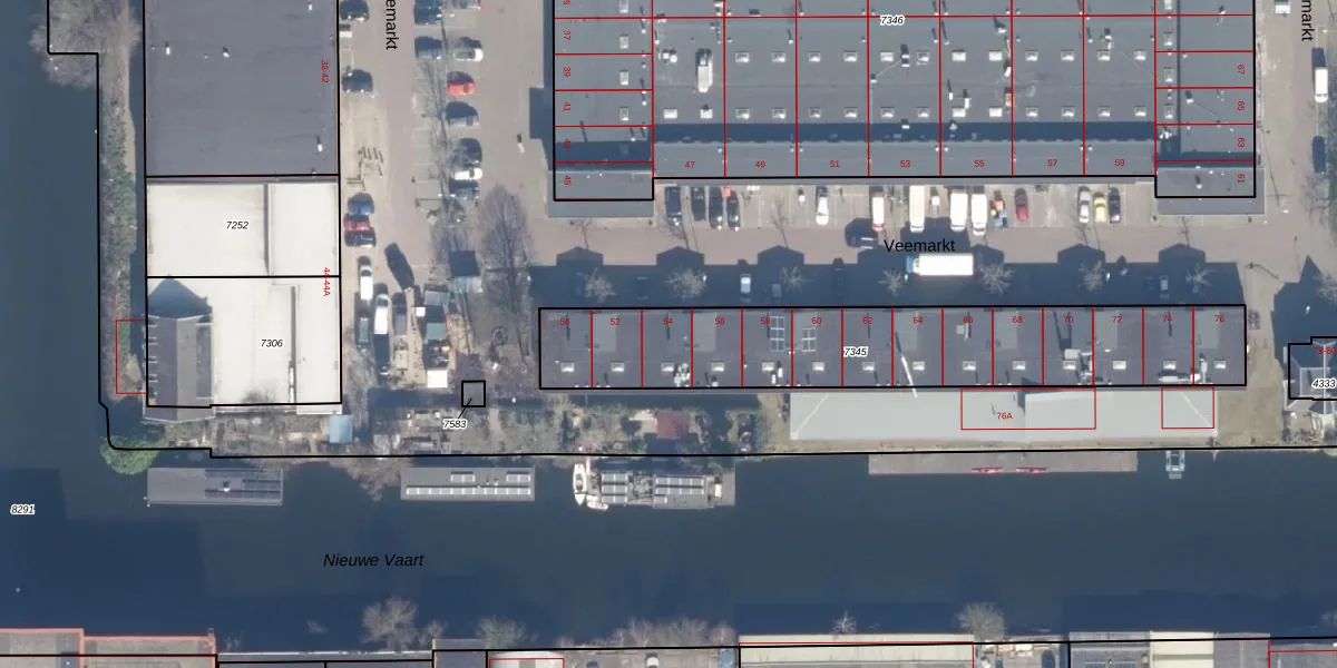 Veemarkt 54 is gelegen op kadastraal perceel ASD02A7345. Deze kadastrale aanduiding is uniek en wordt gebruikt door het Kadaster om eigendomsrechten en andere zakelijke rechten vast te leggen. Het perceel maakt onderdeel uit van de kadastrale gemeente Amsterdam.