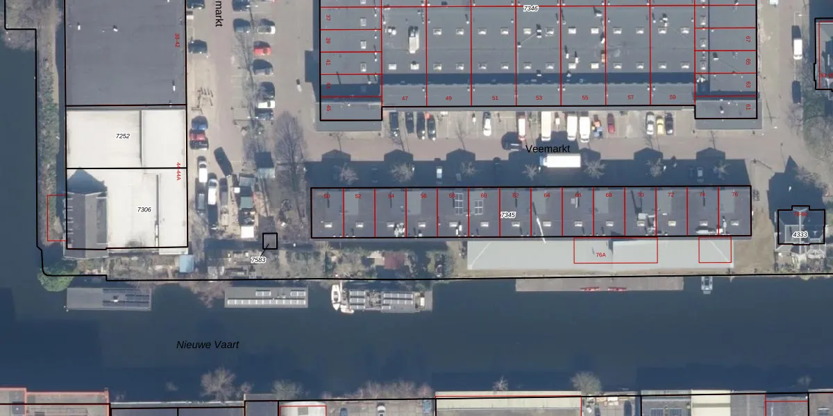 Veemarkt 56 is gelegen op kadastraal perceel ASD02A7345. Deze kadastrale aanduiding is uniek en wordt gebruikt door het Kadaster om eigendomsrechten en andere zakelijke rechten vast te leggen. Het perceel maakt onderdeel uit van de kadastrale gemeente Amsterdam.