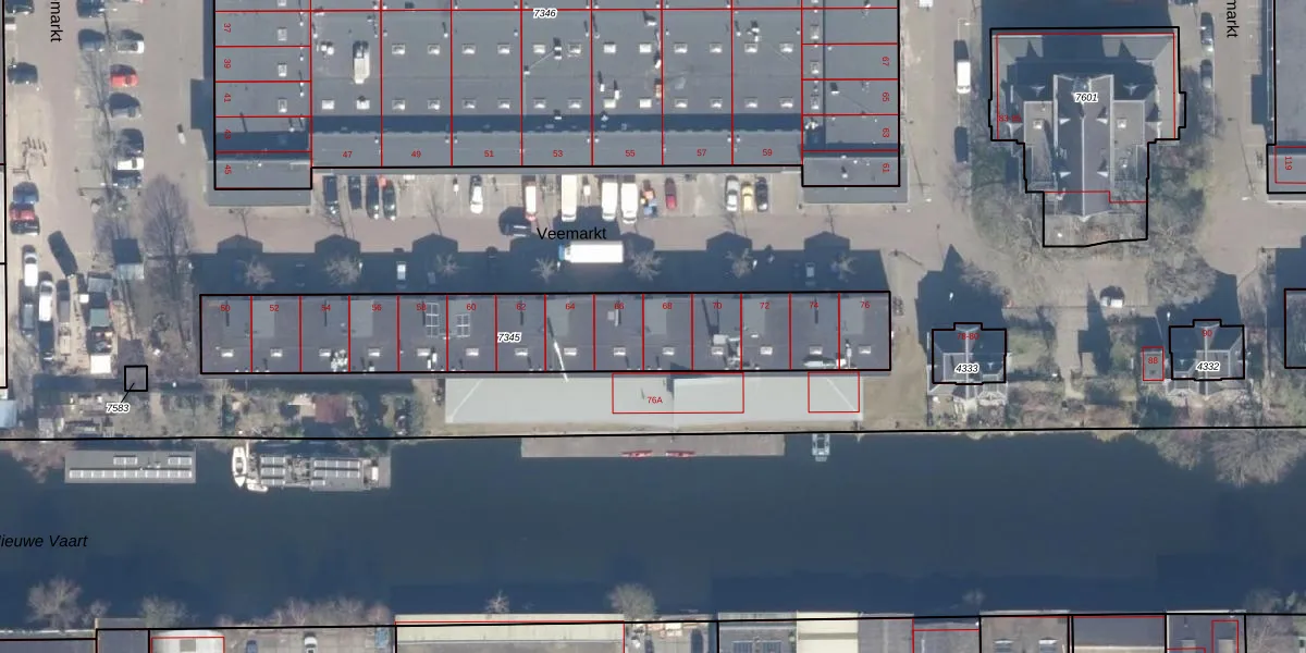 Veemarkt 68 is gelegen op kadastraal perceel ASD02A7345. Deze kadastrale aanduiding is uniek en wordt gebruikt door het Kadaster om eigendomsrechten en andere zakelijke rechten vast te leggen. Het perceel maakt onderdeel uit van de kadastrale gemeente Amsterdam.