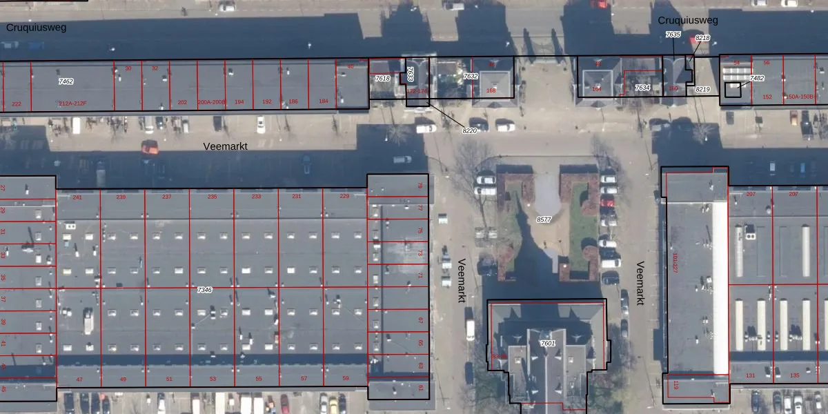 Veemarkt 77 is gelegen op kadastraal perceel ASD02A7346. Deze kadastrale aanduiding is uniek en wordt gebruikt door het Kadaster om eigendomsrechten en andere zakelijke rechten vast te leggen. Het perceel maakt onderdeel uit van de kadastrale gemeente Amsterdam.