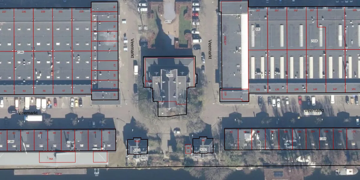 Veemarkt 93 is gelegen op kadastraal perceel ASD02A7601. Deze kadastrale aanduiding is uniek en wordt gebruikt door het Kadaster om eigendomsrechten en andere zakelijke rechten vast te leggen. Het perceel maakt onderdeel uit van de kadastrale gemeente Amsterdam.