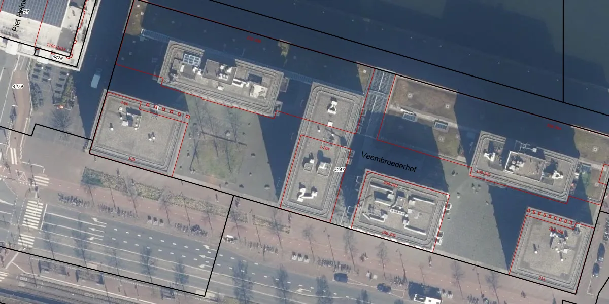 Veembroederhof 100 is gelegen op kadastraal perceel ASD10N4247. Deze kadastrale aanduiding is uniek en wordt gebruikt door het Kadaster om eigendomsrechten en andere zakelijke rechten vast te leggen. Het perceel maakt onderdeel uit van de kadastrale gemeente Amsterdam.