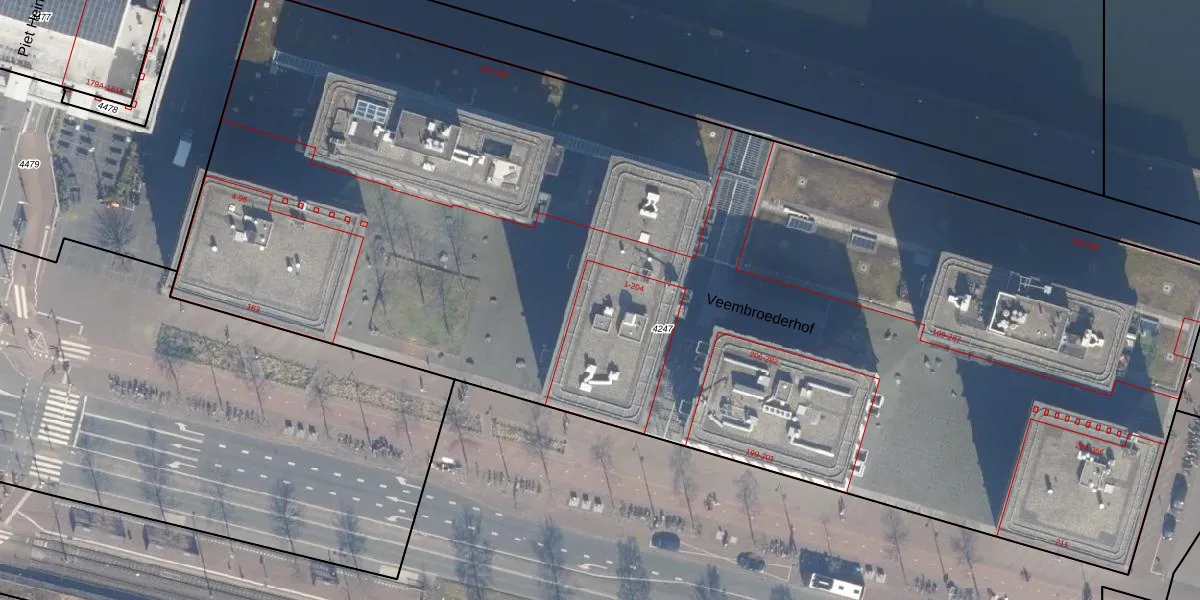 Veembroederhof 114 is gelegen op kadastraal perceel ASD10N4247. Deze kadastrale aanduiding is uniek en wordt gebruikt door het Kadaster om eigendomsrechten en andere zakelijke rechten vast te leggen. Het perceel maakt onderdeel uit van de kadastrale gemeente Amsterdam.