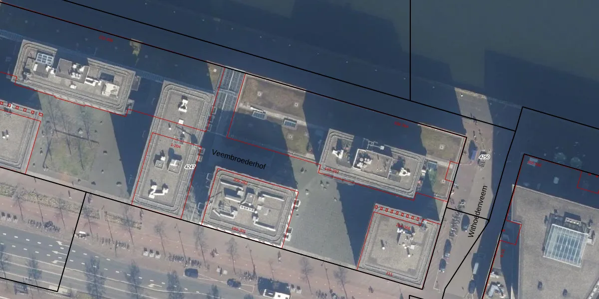 Veembroederhof 115 is gelegen op kadastraal perceel ASD10N4247. Deze kadastrale aanduiding is uniek en wordt gebruikt door het Kadaster om eigendomsrechten en andere zakelijke rechten vast te leggen. Het perceel maakt onderdeel uit van de kadastrale gemeente Amsterdam.