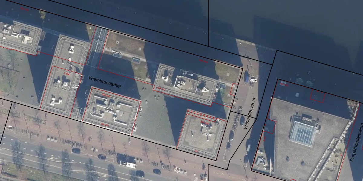 Veembroederhof 207 is gelegen op kadastraal perceel ASD10N4247. Deze kadastrale aanduiding is uniek en wordt gebruikt door het Kadaster om eigendomsrechten en andere zakelijke rechten vast te leggen. Het perceel maakt onderdeel uit van de kadastrale gemeente Amsterdam.
