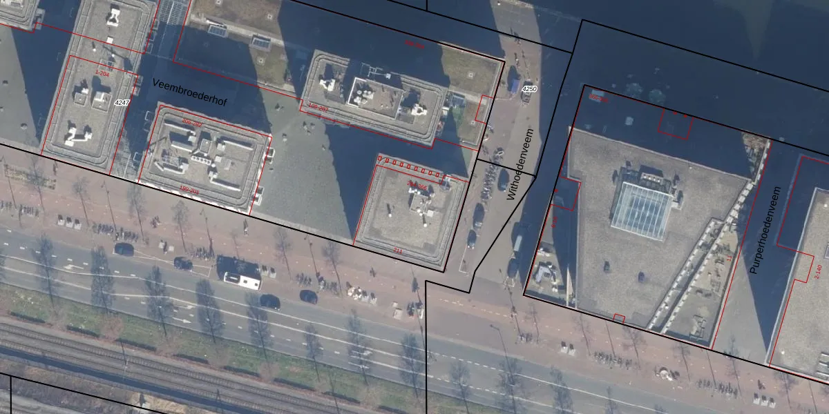 Veembroederhof 336 is gelegen op kadastraal perceel ASD10N4247. Deze kadastrale aanduiding is uniek en wordt gebruikt door het Kadaster om eigendomsrechten en andere zakelijke rechten vast te leggen. Het perceel maakt onderdeel uit van de kadastrale gemeente Amsterdam.