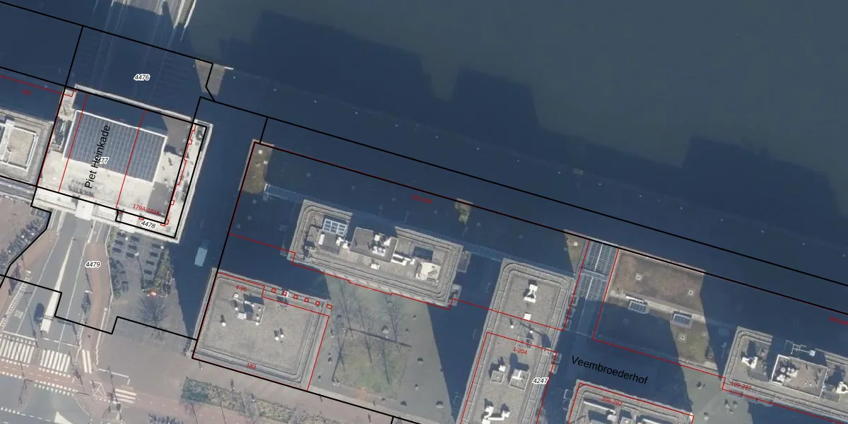 Het perceel waarop Veemkade 312 staat heeft een oppervlakte van 8815 m². Dit is een zeer groot perceel. De perceeloppervlakte wordt geregistreerd door het Kadaster. Gedetailleerde informatie over de maten van dit perceel kunt u vinden in het rapport Kadastrale kaart met maatvoering van Veemkade 312.