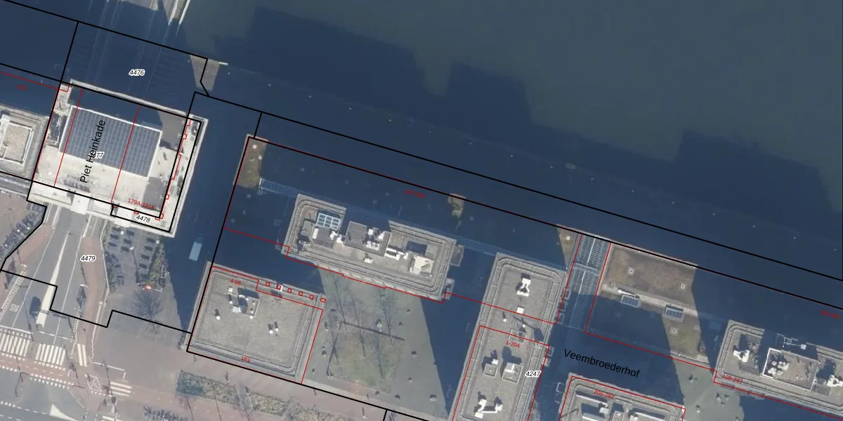 Het perceel waarop Veemkade 322 staat heeft een oppervlakte van 8815 m². Dit is een zeer groot perceel. De perceeloppervlakte wordt geregistreerd door het Kadaster. Gedetailleerde informatie over de maten van dit perceel kunt u vinden in het rapport Kadastrale kaart met maatvoering van Veemkade 322.