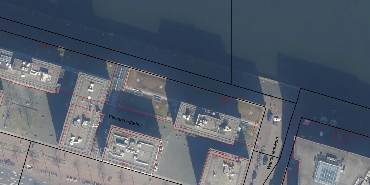 Veemkade 340 is gelegen op kadastraal perceel ASD10N4247. Deze kadastrale aanduiding is uniek en wordt gebruikt door het Kadaster om eigendomsrechten en andere zakelijke rechten vast te leggen. Het perceel maakt onderdeel uit van de kadastrale gemeente Amsterdam.