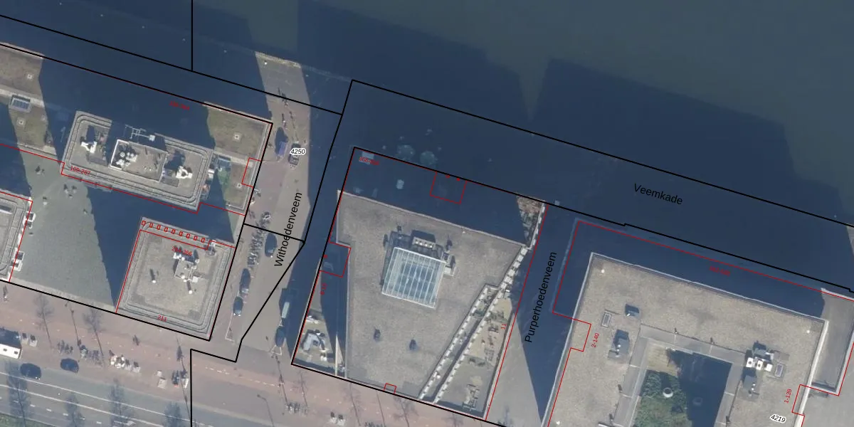 Het perceel waarop Veemkade 442 staat heeft een oppervlakte van 1,0 ha. Dit is een zeer groot perceel. De perceeloppervlakte wordt geregistreerd door het Kadaster. Gedetailleerde informatie over de maten van dit perceel kunt u vinden in het rapport Kadastrale kaart met maatvoering van Veemkade 442.