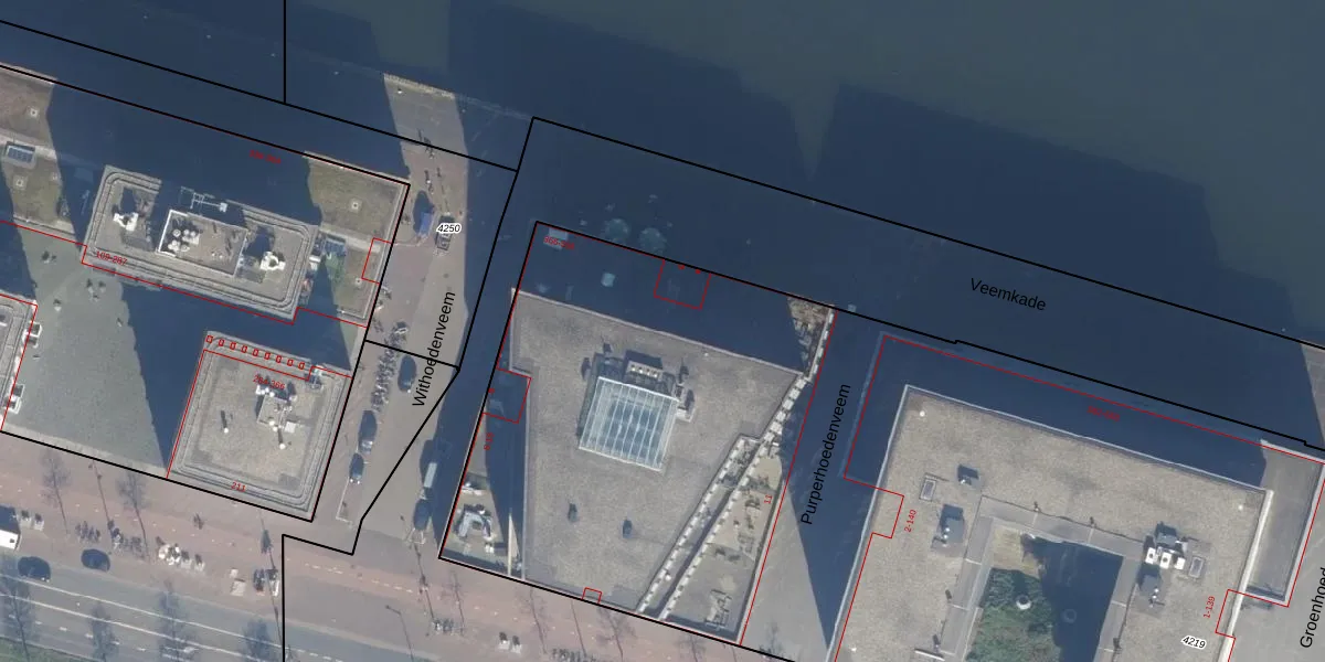 Het perceel waarop Veemkade 480 staat heeft een oppervlakte van 1,0 ha. Dit is een zeer groot perceel. De perceeloppervlakte wordt geregistreerd door het Kadaster. Gedetailleerde informatie over de maten van dit perceel kunt u vinden in het rapport Kadastrale kaart met maatvoering van Veemkade 480.