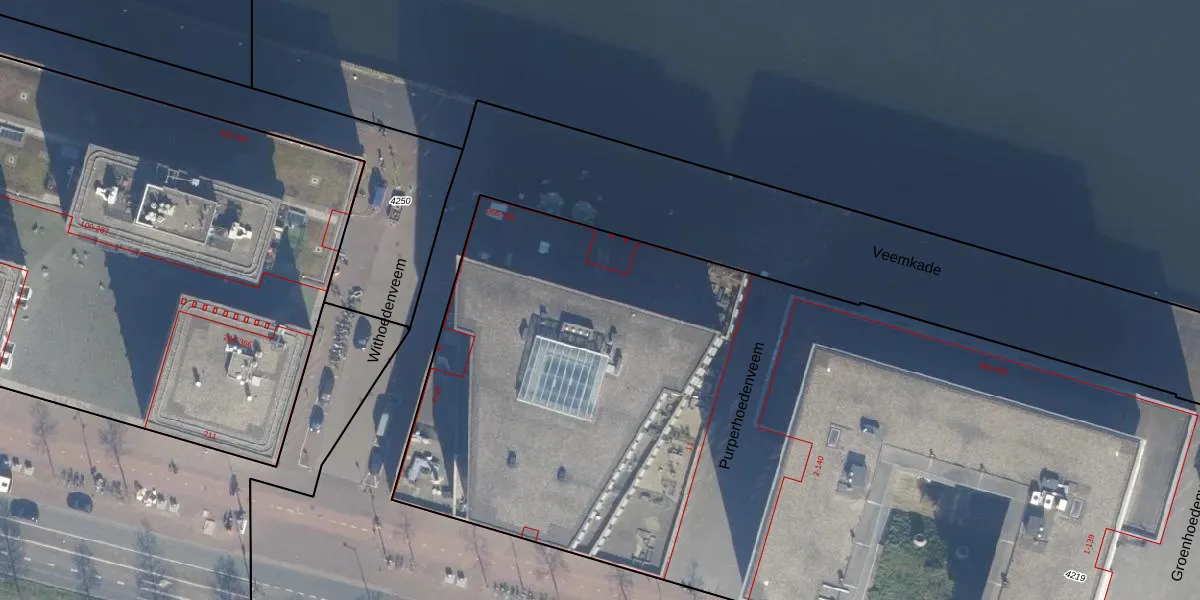 Het perceel waarop Veemkade 512 staat heeft een oppervlakte van 1,0 ha. Dit is een zeer groot perceel. De perceeloppervlakte wordt geregistreerd door het Kadaster. Gedetailleerde informatie over de maten van dit perceel kunt u vinden in het rapport Kadastrale kaart met maatvoering van Veemkade 512.