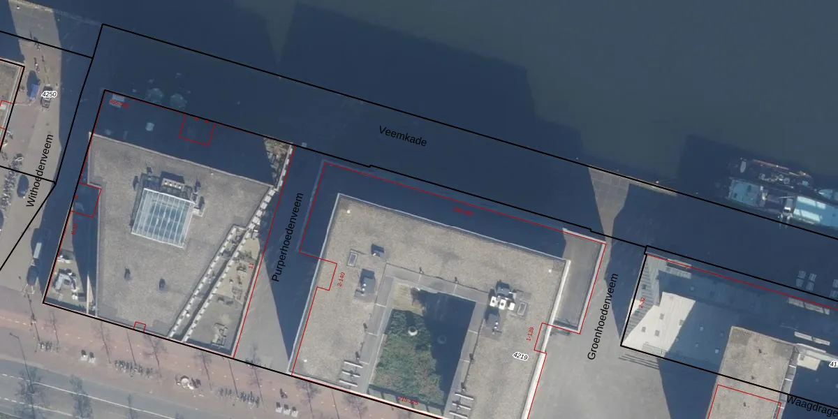 Het perceel waarop Veemkade 564 staat heeft een oppervlakte van 1,0 ha. Dit is een zeer groot perceel. De perceeloppervlakte wordt geregistreerd door het Kadaster. Gedetailleerde informatie over de maten van dit perceel kunt u vinden in het rapport Kadastrale kaart met maatvoering van Veemkade 564.