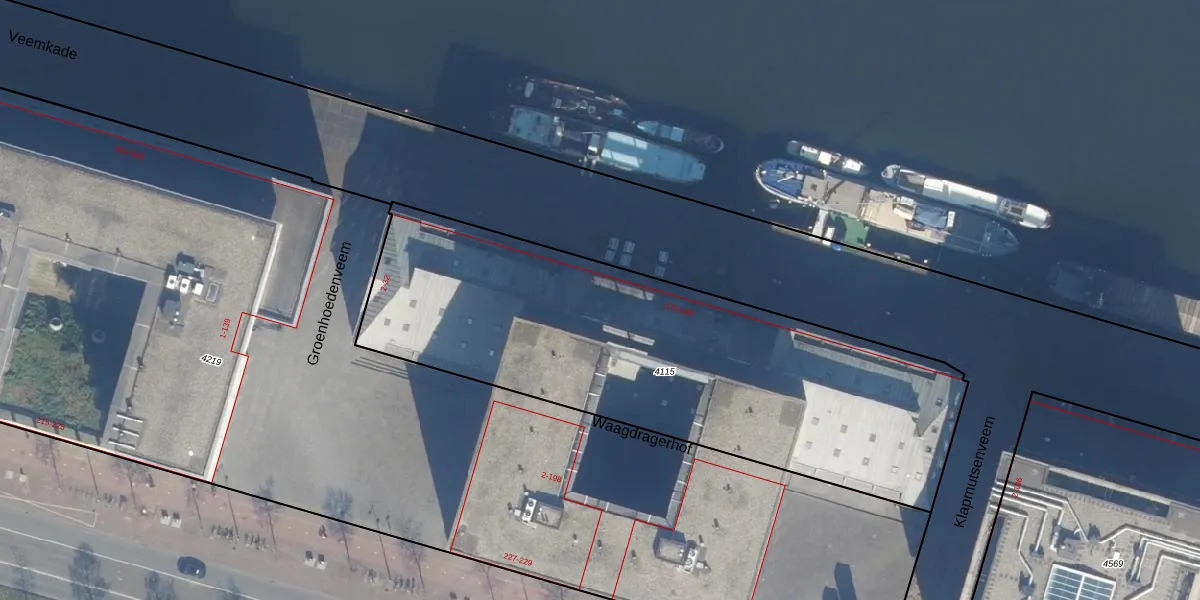 Het perceel waarop Veemkade 576 staat heeft een oppervlakte van 2462 m². Dit is een zeer groot perceel. De perceeloppervlakte wordt geregistreerd door het Kadaster. Gedetailleerde informatie over de maten van dit perceel kunt u vinden in het rapport Kadastrale kaart met maatvoering van Veemkade 576.