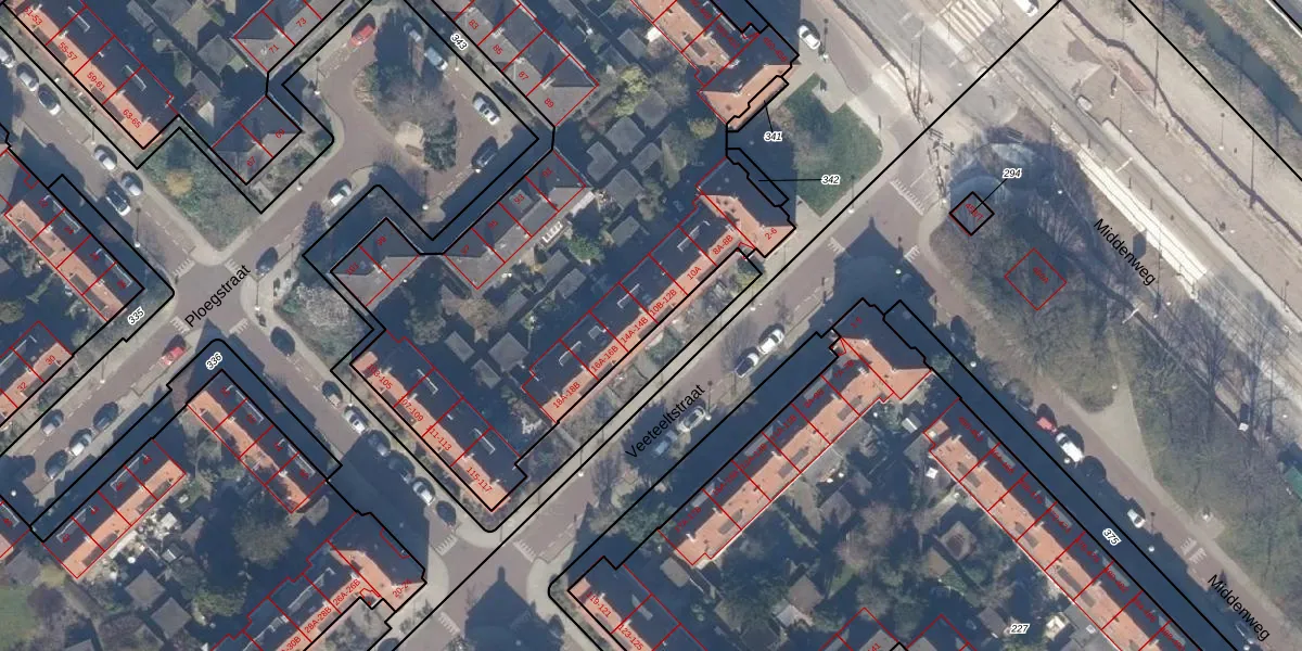 Het perceel waarop Veeteeltstraat 14-B staat heeft een oppervlakte van 6360 m². Dit is een zeer groot perceel. De perceeloppervlakte wordt geregistreerd door het Kadaster. Gedetailleerde informatie over de maten van dit perceel kunt u vinden in het rapport Kadastrale kaart met maatvoering van Veeteeltstraat 14-B.