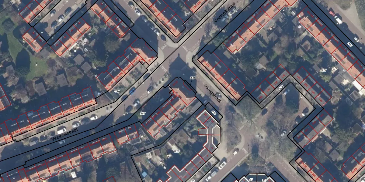Veeteeltstraat 23 is gelegen op kadastraal perceel WTG02C360. Deze kadastrale aanduiding is uniek en wordt gebruikt door het Kadaster om eigendomsrechten en andere zakelijke rechten vast te leggen. Het perceel maakt onderdeel uit van de kadastrale gemeente Watergraafsmeer.