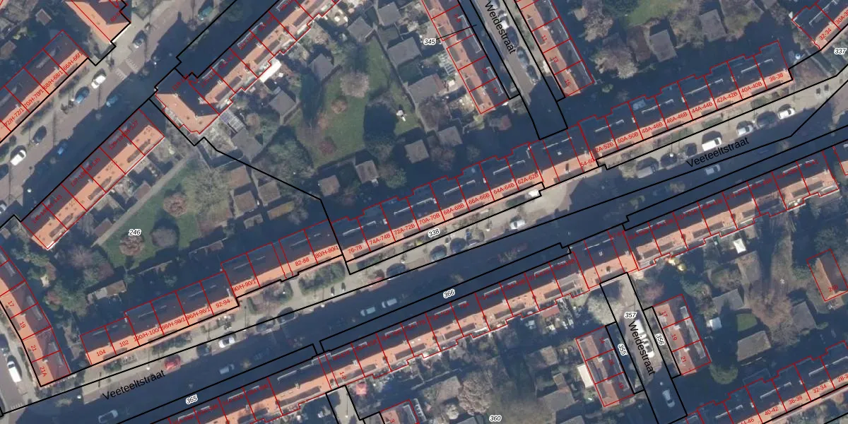Het perceel waarop Veeteeltstraat 70-A staat heeft een oppervlakte van 1,1 ha. Dit is een zeer groot perceel. De perceeloppervlakte wordt geregistreerd door het Kadaster. Gedetailleerde informatie over de maten van dit perceel kunt u vinden in het rapport Kadastrale kaart met maatvoering van Veeteeltstraat 70-A.