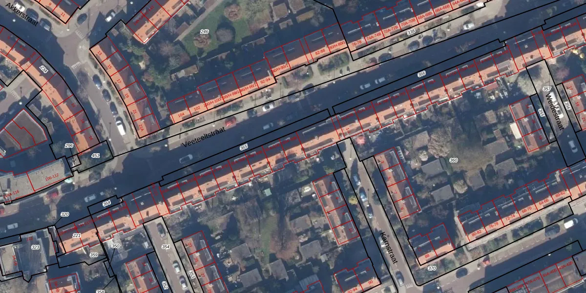 Veeteeltstraat 89-B is gelegen op kadastraal perceel WTG02C360. Deze kadastrale aanduiding is uniek en wordt gebruikt door het Kadaster om eigendomsrechten en andere zakelijke rechten vast te leggen. Het perceel maakt onderdeel uit van de kadastrale gemeente Watergraafsmeer.