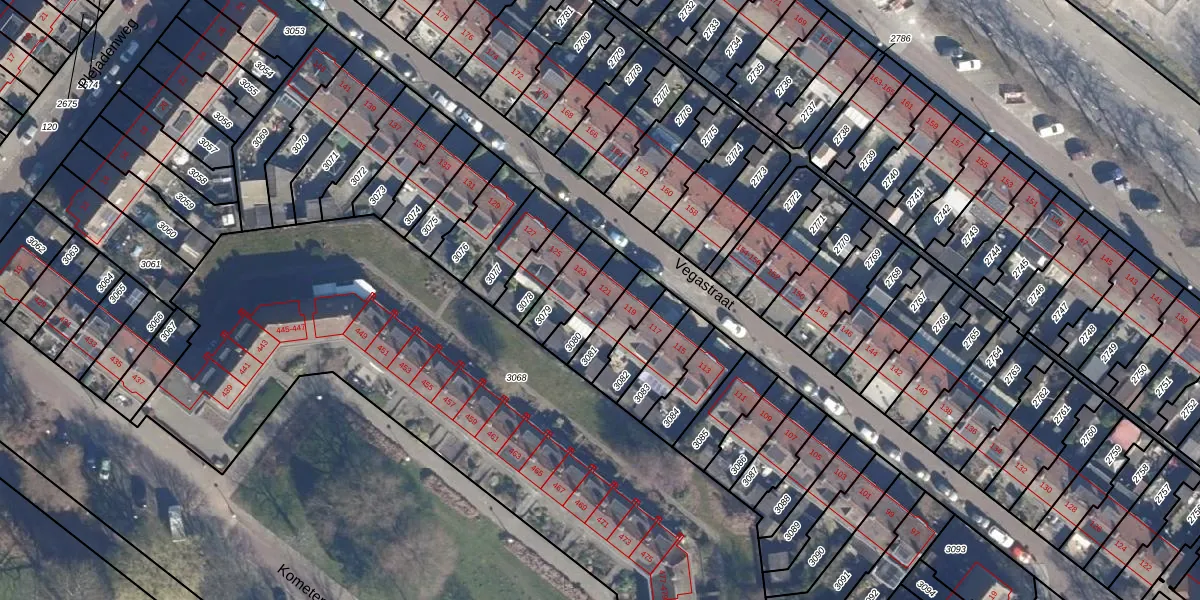 Het perceel waarop Vegastraat 121 staat heeft een oppervlakte van 100 m². Dit is een middelgroot perceel. De perceeloppervlakte wordt geregistreerd door het Kadaster. Gedetailleerde informatie over de maten van dit perceel kunt u vinden in het rapport Kadastrale kaart met maatvoering van Vegastraat 121.