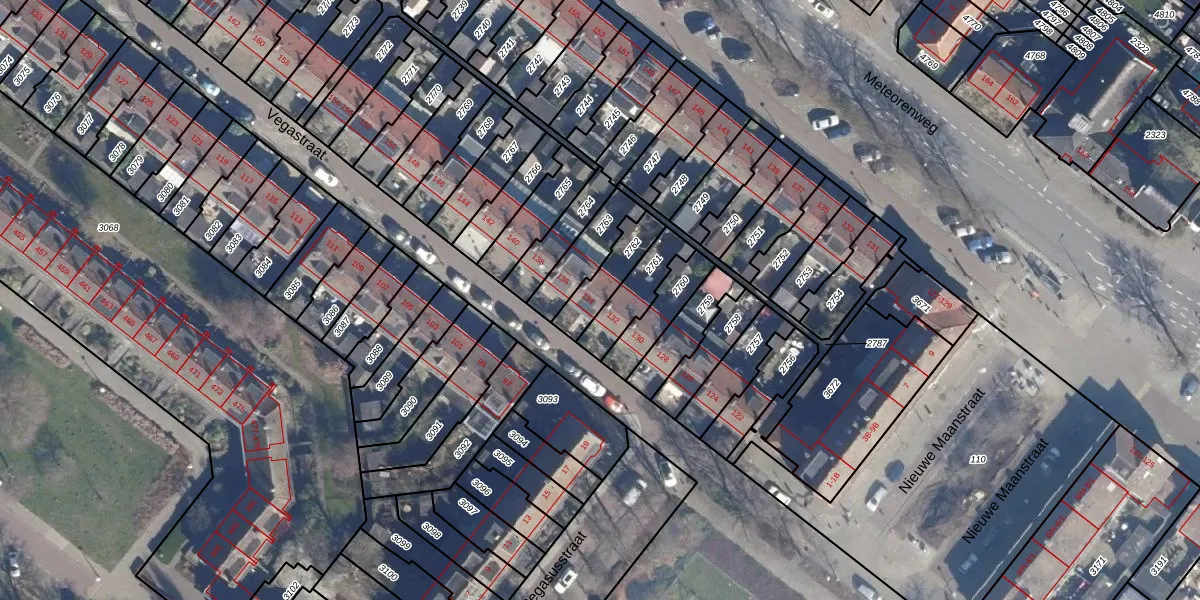Het perceel waarop Vegastraat 134 staat heeft een oppervlakte van 121 m². Dit is een middelgroot perceel. De perceeloppervlakte wordt geregistreerd door het Kadaster. Gedetailleerde informatie over de maten van dit perceel kunt u vinden in het rapport Kadastrale kaart met maatvoering van Vegastraat 134.