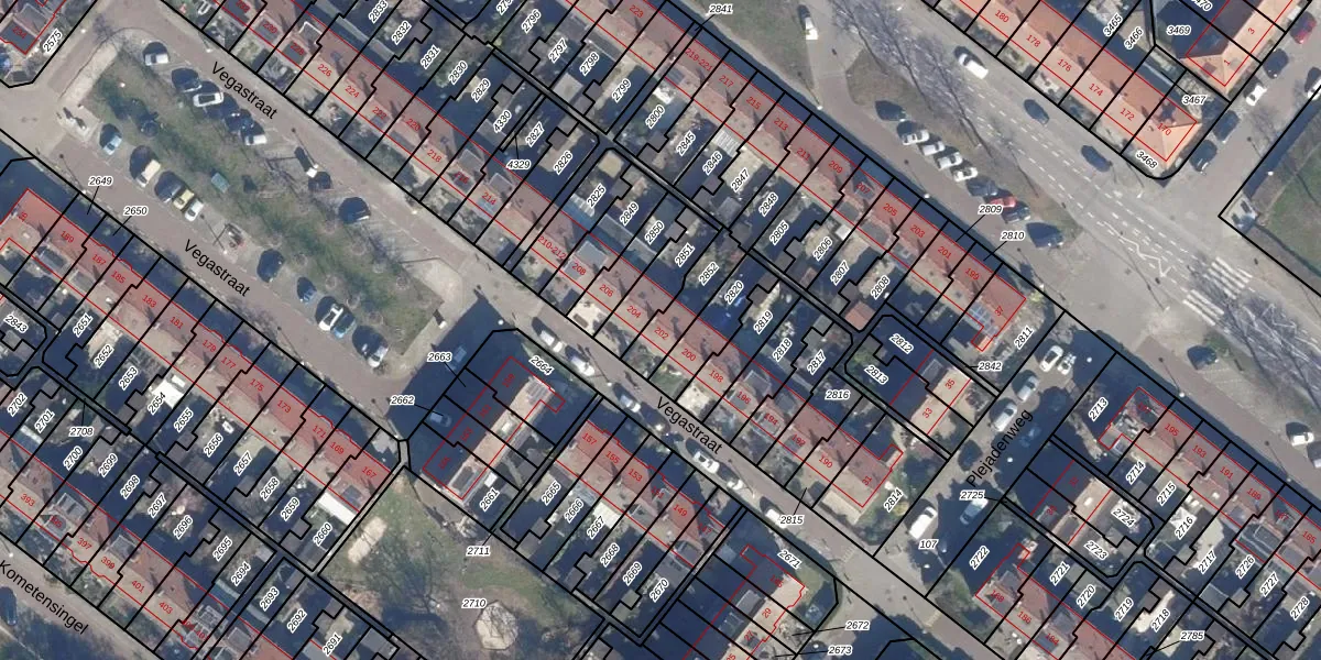 Het perceel waarop Vegastraat 202 staat heeft een oppervlakte van 127 m². Dit is een middelgroot perceel. De perceeloppervlakte wordt geregistreerd door het Kadaster. Gedetailleerde informatie over de maten van dit perceel kunt u vinden in het rapport Kadastrale kaart met maatvoering van Vegastraat 202.
