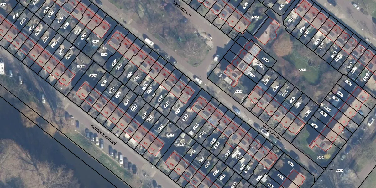 Het perceel waarop Vegastraat 23 staat heeft een oppervlakte van 165 m². Dit is een middelgroot perceel. De perceeloppervlakte wordt geregistreerd door het Kadaster. Gedetailleerde informatie over de maten van dit perceel kunt u vinden in het rapport Kadastrale kaart met maatvoering van Vegastraat 23.