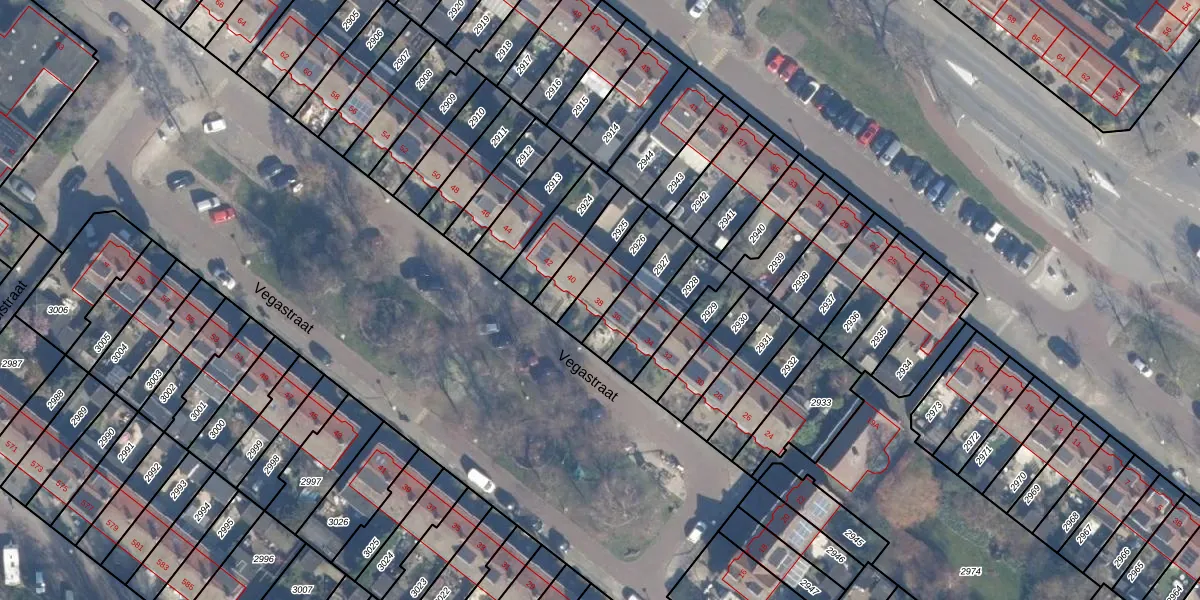 Het perceel waarop Vegastraat 38 staat heeft een oppervlakte van 133 m². Dit is een middelgroot perceel. De perceeloppervlakte wordt geregistreerd door het Kadaster. Gedetailleerde informatie over de maten van dit perceel kunt u vinden in het rapport Kadastrale kaart met maatvoering van Vegastraat 38.