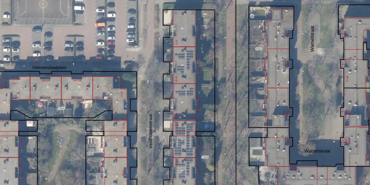 Veldhuizenstraat 25 is gelegen op kadastraal perceel WPK02L2566. Deze kadastrale aanduiding is uniek en wordt gebruikt door het Kadaster om eigendomsrechten en andere zakelijke rechten vast te leggen. Het perceel maakt onderdeel uit van de kadastrale gemeente Weesperkarspel.