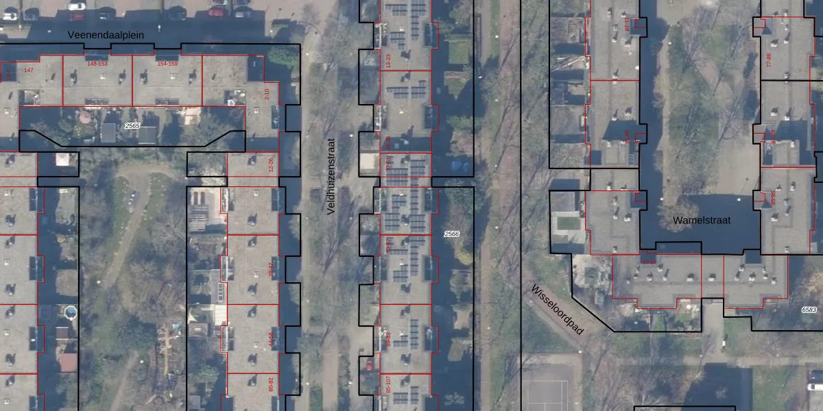 Veldhuizenstraat 45 is gelegen op kadastraal perceel WPK02L2566. Deze kadastrale aanduiding is uniek en wordt gebruikt door het Kadaster om eigendomsrechten en andere zakelijke rechten vast te leggen. Het perceel maakt onderdeel uit van de kadastrale gemeente Weesperkarspel.