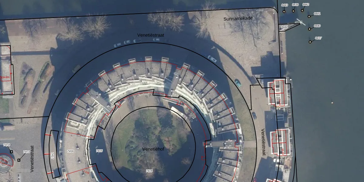 Het adres is gelegen op perceel 7416 in de sectie A en de kadastrale gemeente Amsterdam. De kadastrale aanduiding is aldus ASD02-A-7416. De gemiddelde perceeloppervlakte in de kadastrale gemeente Amsterdam is 2763,93 m². Dit perceel is met zijn 7719 m² dus groter dan gemiddeld. De grootste perceeloppervlakte in de kadastrale gemeente is 14,3 ha. De kleinste oppervlakte bedraagt 0 m². Er zijn 221 adressen aanwezig op het perceel. De huidige grenzen van het perceel zijn digitaal in de Basisregistratie Kadaster (BRK) geregistreerd op 05-08-2011.