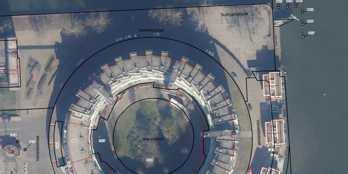 Het perceel waarop Venetiëhof 92 staat heeft een oppervlakte van 7719 m². Dit is een zeer groot perceel. De perceeloppervlakte wordt geregistreerd door het Kadaster. Gedetailleerde informatie over de maten van dit perceel kunt u vinden in het rapport Kadastrale kaart met maatvoering van Venetiëhof 92.