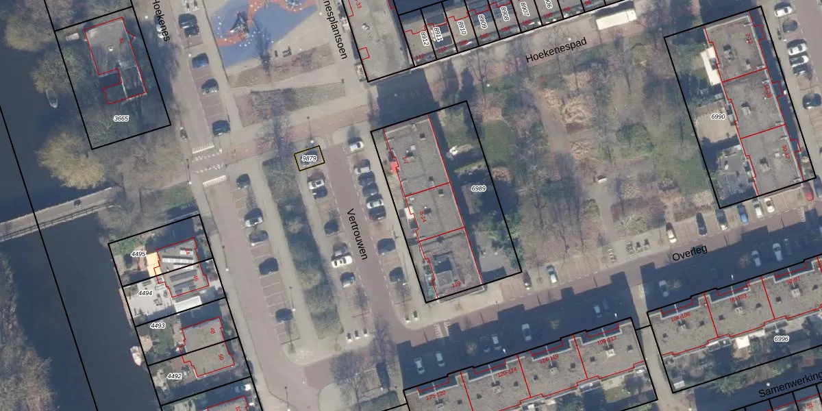 Het perceel waarop Vertrouwen 13 staat heeft een oppervlakte van 1066 m². Dit is een zeer groot perceel. De perceeloppervlakte wordt geregistreerd door het Kadaster. Gedetailleerde informatie over de maten van dit perceel kunt u vinden in het rapport Kadastrale kaart met maatvoering van Vertrouwen 13.