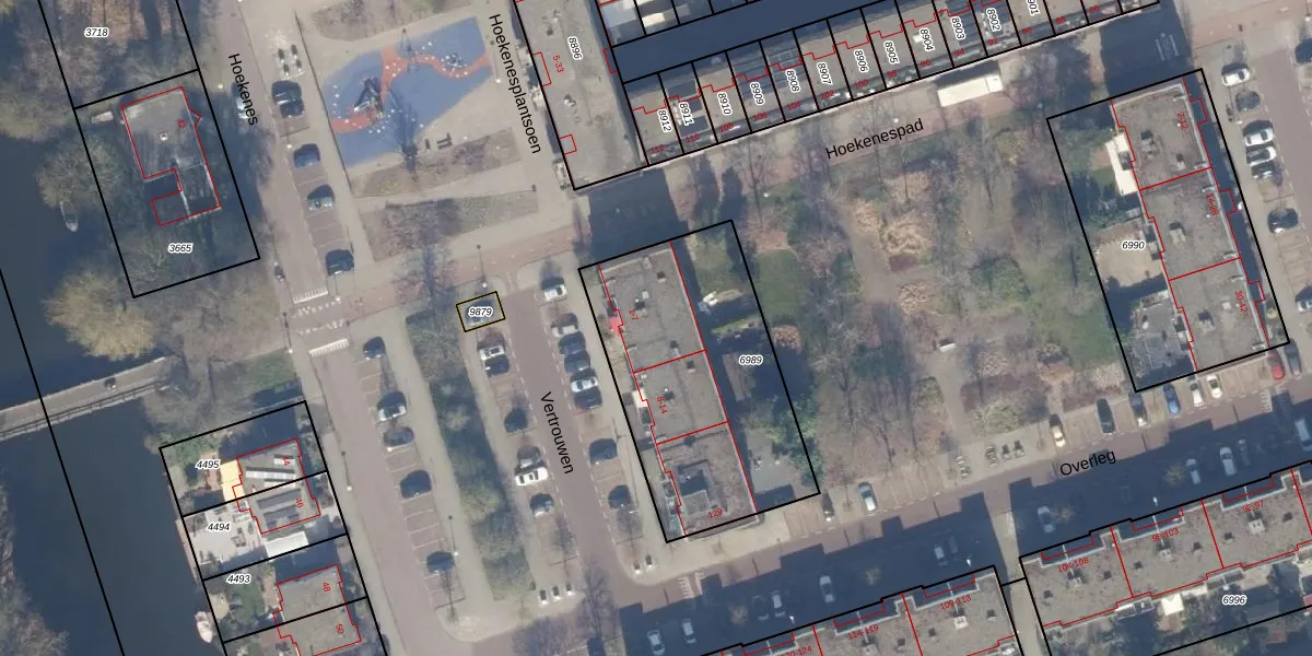 Het perceel waarop Vertrouwen 7 staat heeft een oppervlakte van 1066 m². Dit is een zeer groot perceel. De perceeloppervlakte wordt geregistreerd door het Kadaster. Gedetailleerde informatie over de maten van dit perceel kunt u vinden in het rapport Kadastrale kaart met maatvoering van Vertrouwen 7.