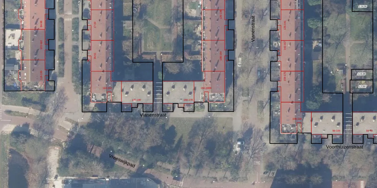 Het perceel waarop Vianenstraat 170 staat heeft een oppervlakte van 5721 m². Dit is een zeer groot perceel. De perceeloppervlakte wordt geregistreerd door het Kadaster. Gedetailleerde informatie over de maten van dit perceel kunt u vinden in het rapport Kadastrale kaart met maatvoering van Vianenstraat 170.