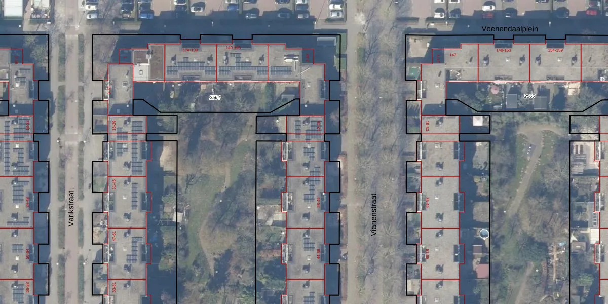 Het perceel waarop Vianenstraat 20 staat heeft een oppervlakte van 6480 m². Dit is een zeer groot perceel. De perceeloppervlakte wordt geregistreerd door het Kadaster. Gedetailleerde informatie over de maten van dit perceel kunt u vinden in het rapport Kadastrale kaart met maatvoering van Vianenstraat 20.