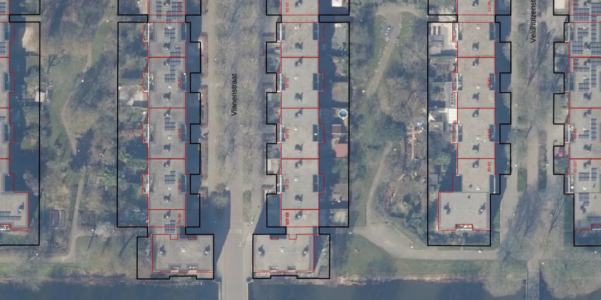 Het perceel waarop Vianenstraat 63 staat heeft een oppervlakte van 6372 m². Dit is een zeer groot perceel. De perceeloppervlakte wordt geregistreerd door het Kadaster. Gedetailleerde informatie over de maten van dit perceel kunt u vinden in het rapport Kadastrale kaart met maatvoering van Vianenstraat 63.
